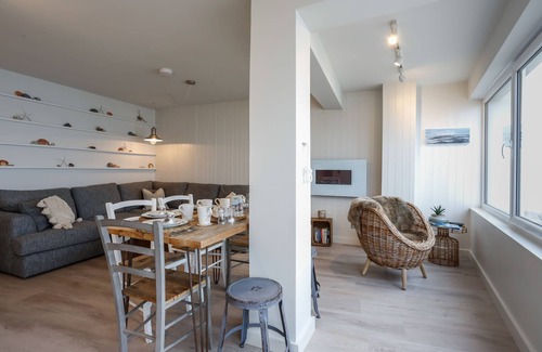 Sea Spray includes Wi-Fi and a flatscreen TV, Nespresso pod machine, dishwasher, a fully quipped kitchen and and soft linen and fluffy towels. The apartment features one king bedroom, one twin bedroom and one single room with ensuite shower room and w/c (this room has sea views) . Sea Spray features a contemporary bathroom with shower with sea view window, plus a bright and airy kitchen with dishwasher, microwave, washing machine and Nespresso coffee pod machine. Whitewashed wooden floors throughout this beautiful property compliment the coastal tones and furnishings. The apartment has sliding windows to the South which open to allow you to open the space up to the beach views and the sound of the waves, the perfect place to see the sun rise and set over the water.