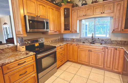 Are pets allowed? Yes. There will be an additional charge of $30/day. This additional charge will be passed on to our cleaning crew for additional pet clean up. We are doggie lovers and our home and property provide a fun, happy, and comfortable space for your beloved fur babies. Dogs are welcomed in the home BUT we do ask that if the dog is not potty trained, that they be crated when indoors. We will happily provide the crate. The yard is completely fenced, allowing your pet plenty of room to run and play. Doggie dishes and a sleeping crate are available upon request. The back patio has a convenient Doggie Door so that your pet can come into the patio as desired. Our pups love the water, and the lake offers a lot of swimming fun. BUT this is Florida, there are Alligators in every body of water, so please be aware and keep your eyes open for any lurking uninvited guests. And Please, if you see an Alligator DO NOT FEED THEM. It’s illegal and dangerous.