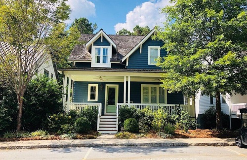 The home also includes 2 offices, a beautiful front and back porch, and a lower-level firepit area. This beautiful home that sits in Serenbe's oldest, most communal neighborhood. Easy walking distance to restaurant (The Hill), cafe/coffee shop (The Blue Eyed Daisy), a wine store, and various shops. During farmer's market season, you're right around the corner from a lovely market. A short walk out the back door through the woods takes you to the treehouse, and you can get around the rest of Serenbe's large property on our golf cart, which is included as an amenity in your stay.