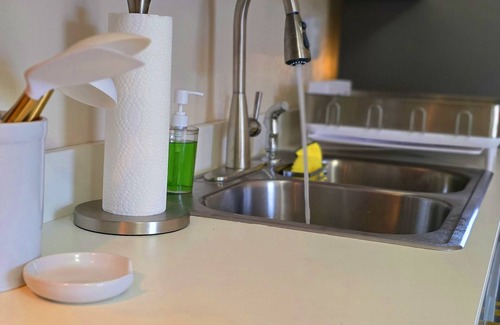 - The living room boasts a large smart TV loaded with Netflix, ESPN, Disney+, and Hulu for endless entertainment.