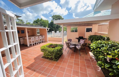 Lovely Caribbean Home in a scenic and quiet neighbourhood. 3 bedrooms and 2.5 bathrooms and multiple lounge areas. Offers great outdoor amenities such as outdoor dining, a pool, bar and BBQ area. 10-15 min walk to the Supermarkets, shopping malls, local restaurants and bars and just a 5 min walk to the crystal clear water beach!!