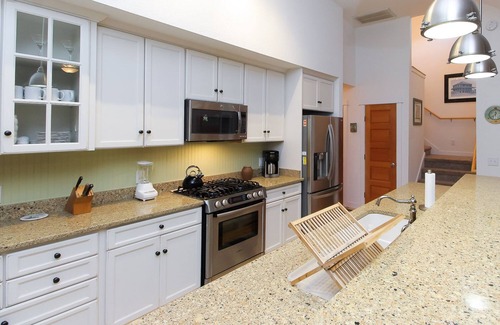 Our returning guests will notice lots of wonderful additions to our home. There’s a beautiful new, and bigger, dining set. It seats ten, so your whole crew can chow down together. You’ll also find new “beachy” porcelain dishes, glassware, utensils, flatware, cutting boards, and frying pans. There are several new area rugs throughout the house to make the entryway, master bedroom and hallways more decorative and welcoming. The entire house is now outfitted with plush bright white bath and hand towels. The bedrooms have been supplied with upgraded pillows as well. Because you have been such a pleasure for us to have in our home, we wanted to thank you with more creature comforts to make your stay even more enjoyable. Welcome!