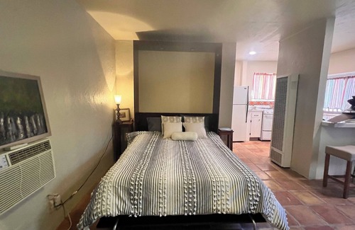 Cute Casita, granny flat studio behind residence, quiet movie colony district, and Palm Springs. Murphy bed and living room are ready for your arrival. Enjoy it, fully equipped kitchen with countertop seating for eating at the bar.