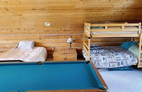 WINTER BOOKINGS: PLEASE NOTE DECEMBER THROUGH APRIL YOU CAN ONLY ACCESS THE CABIN BY SNOWMOBILE! There are snowmobiles to rent right at the parking area with wagons to help pull your stuff in. Our cabin is a fully furnished home with three bedrooms plus an open loft with bunk bed and futon. There is a fully stocked kitchen and a wonderful huge open wood fireplace. You can have All of the free firewood you like. We have a Foosball table and a billiards table that converts to a ping pong table in the loft. There is an outside fire pit. There are ATV rentals nearby. Just contact us for any further information.
