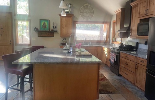 Home Baked Bread and coffee is provided in the morning.Lunches for your outdoor adventure can be arranged as well as a home cooked meal when you return from your adventure. (additional fee upon request) Or cook in the gourmet kitchen that includes every pot,pan,spice or gadget you desire.Large Hot Tub for viewing the stars. Gorgeous Huge Windows to watch the snow & wildlife The woodstove is a cozy way to warm your toes and heart. You have access to the entire home except the Master Suite & Bathroom. The master suite has a barn door and is locked. Host may or may not be onsite in the master suite. The master suite has a separate entrance. Host may also be working on the outside of the property or the garage.