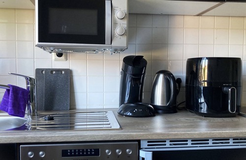 Prepare a home-cooked meal in the kitchen, complete with a stovetop, a refrigerator, and a dishwasher, as well as a coffee maker, a microwave, and a toaster. Enjoy the internet and TV. And thanks to the washer and dryer, you'll even be able to travel light.