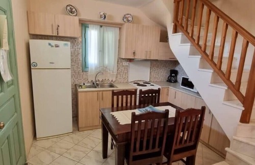 Discover the perfect vacation destination at our beautiful maisonette, located just 1km away from Gyrismata and Molos beaches. With stunning views from the private balcony and access to the establishment's pool, you can unwind in style.