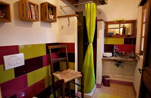About thirty houses, a small square, a small church, five people, this is Bacciardi, the place chosen by Betty and Lorenzo to live together and grow their children. Closed to a ridge just below Mount Nerone, this small center can not be reached by car, you only get on foot and need comfortable shoes. Walking over the threshold of these buildings seems to have made a dip in the past where life had other rhythms and spent serene. The renovation has been done in bio-building, there is also a commitment to respect for the environment with rainwater recovery, use of solar panels and the decision to use only wood to heat up. In 2010, the restaurant was inaugurated where happy moments are spent together with the people who come here. The kitchen is improvised, the menu is sound, seasonal, based on local products, simple ingredients but revamped genius by Lorenzo. Pasta is homemade, just like bread. Breakfast is made with bread and jams, goat's milk, homemade cakes or tarts. The rooms to receive guests are three, one double, one triple, both with bathroom and an apartment that can accommodate up to 6 people with kitchen use. The colors, the fresh flowers, rosemary in the shower, the scent in the sheets, are the attentions given to the people who come to stay here. There are still many dreams to be built in the field, a tent camping and a synergic vegetable garden, based on the principles of biodynamics and the planting of extinct fruit trees. All this with the hope of giving you well-being and leaving a good memory of whoever goes there. A place where you sit on old chairs can relax, sip an aperitif between friends. Here, far from every destruction, reigns silence, a precious thing of these times! P. S. For all those who can not do without cell phones, there is no field here!