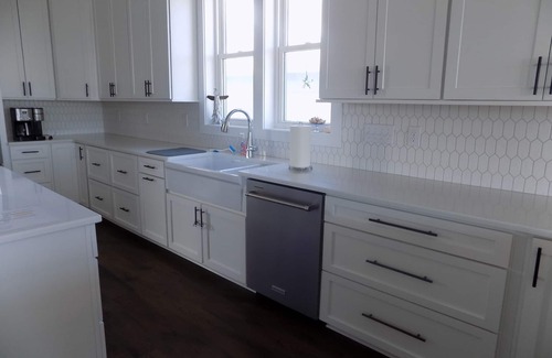 Welcome NON-SMOKERS ONLY! SeaGullible is a custom built, smoke-free property located directly across the street from the ocean. Beach access is directly across the street. All five bedrooms have their own private bath. There are 2 large covered front decks with porch swings and rockers so you can enjoy the beautiful ocean and sunset views. You will find a large pool and deck area with umbrellas, seating and loungers. There are also 2 full covered decks located on the rear of the home overlooking the pool. A large kitchen fully equipped with cooking essentials. Home has a residential elevator to help with the assistance of carrying luggage between floors and a downstairs foyer area with desk and chair. A stackable washer and dryer located in the master suite bathroom and a full capacity washer/dryer located on the 2nd floor.
