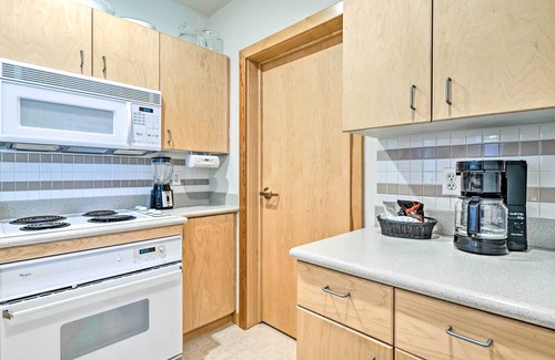 Back inside the condo, you'll find an inviting and cozy living room. The space includes a fireplace sure to keep you warm on snowy nights. Make some hot cocoa, grab a spot on the couch, and watch a show on the flat-screen cable TV.