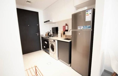 Indulge in the perfect fusion of city living and comfort at our stylish studio apartment located in the lively East Village of Aljada, Sharjah. Tailored for solo travelers or couples seeking a contemporary retreat, our space is equipped with a full kitchen and exciting amenities. Just steps away from trendsetting cafés, parks, and cultural landmarks like Al Majaz Waterfront and Al Noor Masjid, our urban haven invites you to explore, indulge, and relax in style.