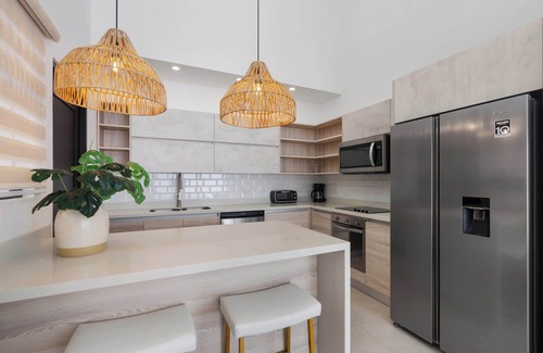 Elegant and Contemporary Decor — Stay in a contemporary space with furniture and decor that effortlessly blends modern elegance and charm with bohemian tropical vibes.