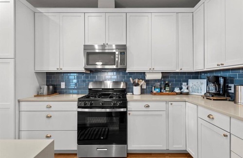 Experience elevated convenience in a modern, chef-inspired kitchen, perfectly outfitted for both quick bites and extended stays. This sleek culinary space features high-end stainless steel appliances, ample counter space, and all the essentials from quality cookware and utensils to dishes, glassware, and a full coffee setup for your morning brew. Whether you’re experimenting with local ingredients from Austin’s farmers markets or reheating takeout from the city’s top eateries, this kitchen makes it effortless to cook, dine, and entertain in style.