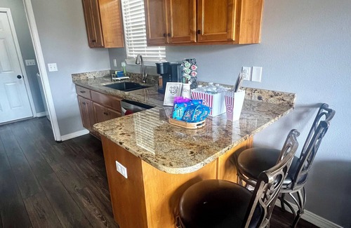The Battlefield Family Retreat is your home away from home with 5 charming bedrooms. This tranquil house features 3 queen beds, 1 bunk bed with a trundle, and 1 king bed, perfect for the entire family. This spacious home has a theater room with heated massage recliners, surround sound and a 98" tv for a great night hanging out with your family. If you are looking for something more relaxing enjoy your cup of coffee on the deck watching the animals in the field behind the house or enjoy a quiet evening sitting around the firepit or soaking in the 8 person hot tub. If you like big family dinners you should be able to find everything you need in the fully stocked kitchen including a double oven. You are also only minutes away from Springfield and many amazing restaurants. Whether you are looking for a place to work remotely while enjoying time with your family or if you are looking to create a great family vacation you can find it all within a short drive of this great home.