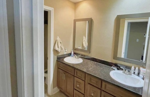 Newly renovated and decorated. This, bright and open house is a great fit for anyone’s needs. The house is equipped with everything that you need. Master bedroom has an on suite bathroom there’s equipped with a walk-in shower and very large Jacuzzi tub. House is completely gated. You will absolutely love this house. The home is a five bedroom, but we have made multiple listings to accommodate any amount of group of people and make it more cost-effective. Single home with 2 car garage. This is a 5 bedroom home that we have made a second listing for 3 bedrooms to make more cost effective for smaller groups. Open floor plan great for entertaining.