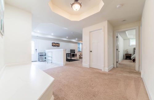 This luxury suburban home in the middle of the city, boast 3122 square foot with 5 bedrooms and 5.5 bathrooms. . Great access to DC with short 2 block walk to metro or 10 minute drive. Uber rides are affordable. Plenty of room for everyone to gather together or enjoy separate private areas. Home features three levels of spacious living. Main level has a living room, dining, room, office, and kitchen with tons of natural light. The lower level has a living room, full bathroom, and separate bedroom. The upper level has four well appointed bedrooms with a private bathroom in each bedroom. Shops and restaurants line neighboring streets. A short stroll to green spaces with playgrounds and splash parks.