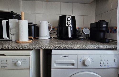 Kitchen: Fully equipped with everything you need to cook like a pro, from a gas hob and electric oven to a microwave, dishwasher, washing machine, and even an air fryer. Whether you’re whipping up breakfast or a full dinner, it’s all here.