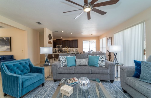 Experience the ultimate family vacation retreat at Stevenson's Place, a newly updated six-bedroom, 3.5-bathroom vacation home designed for both comfort and entertainment. This modern two-story residence features an open-concept floor plan, with a stylishly furnished living room, a fully equipped kitchen with stainless steel appliances, and a spacious dining area overlooking the private pool.
