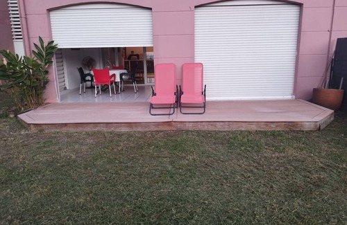 T2 with private garden in quiet and secure residence fully equipped beautiful view Bay of Fort de France bathroom corner kitchen induction plate oven Tv canal plus convertible sofa in the living room air-conditioned bedroom washing machine refrigerator and fans terrace with lounge