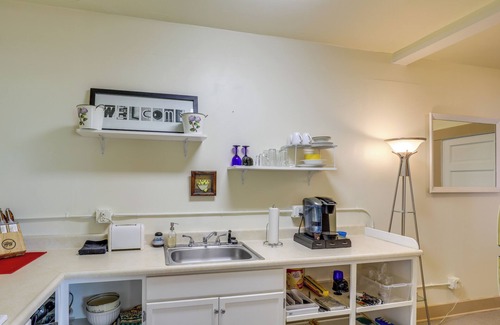KITCHENETTE: Well equipped, refrigerator, stovetop, toaster oven, Keurig, standard drip coffee maker, blender, cooking basics, spices
