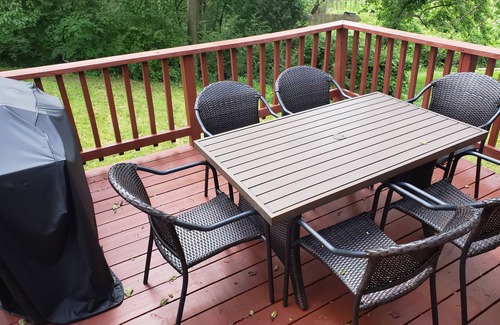 Welcome to your cozy yet large home that is perfect for any size group. When we say the house is stocked, it is fully loaded and the check-in is as seamless as possible. Large backyard backed up to trees, deck with seating and firepit, the highest quality beds and linen that is extremely comfortable and much much more.