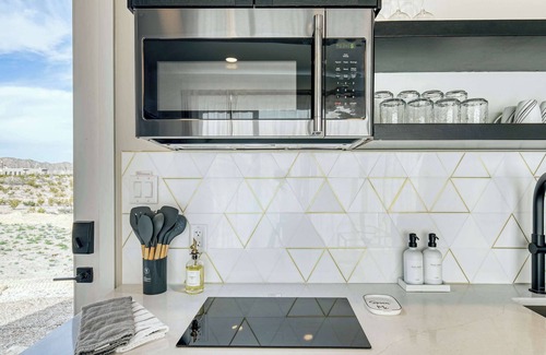 Welcome to Terlingua's newest and most luxurious property, Stardust Big Bend. A-Frame #10 accommodates 4 people. The location is central, 5 minutes from the national park and Ghosttown, on the main highway. Each cabin has a full kitchen with all cooking essentials. A wrap-around deck on three sides with patio furniture, a covered pergola, & a firepit. We have a clubhouse with a pool table, air hockey, foosball, arcades, darts & more. We have 12 rentals in total for large groups to stay together.