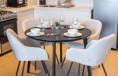 Our charming 1 bed apartment is located on the 9th floor so those scared of heights need not worry. Greeted by the concierge as you walk in, other treats include a gym and swimming pool, so if your family or friends annoy you, you know where to send them.