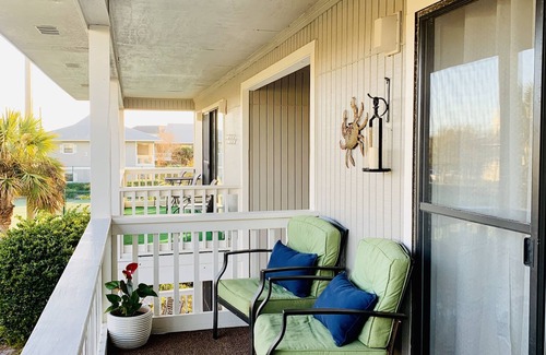 Enjoy the beautifully landscaped views of Beachwood Villas property from our second story porch. Our condo is conveniently located across the street from the Beachwood Villas public beach access, meaning there is only a four minute walk between you and the beach! This affordable vacation home will not leave you wanting for more.