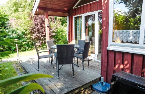 Rott 7 km from Bösingfeld: Holiday village "Ferienpark Extertal". 150 houses in the resort. On the outskirts, in a quiet position, in a cul-de-sac, in the countryside, in the woods. Private: natural state property 220 m2, lawn for sunbathing 60 m2. Stepped path (8 steps) to the house. Public parking 10 m on the road. Supermarket 8 km, restaurant 8 km, bus stop 1.5 km, railway station 11 km, sandy beach 11 km, outdoor swimming pool 11 km, indoor swimming pool 11 km, bathing lake "Doktorsee" 11 km. Golf course (18 hole) 19 km. Walking and hiking trails from the holiday park. The holiday park is located on the edge of a nature reserve and consists of wooden holiday homes built in Scandinavian country house style.