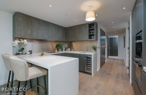 Portico Residences offer this exceptional brand new three bedroom apartment which is supremely located in a stunning development that’s set to become the new favourite landmark on the London skyline. This superbly appointed apartment features an open plan living space with lounge, kitchen and dining areas. It also offers a luxury master bedroom with en-suite bathroom, two further stylish bedrooms and a shower room.