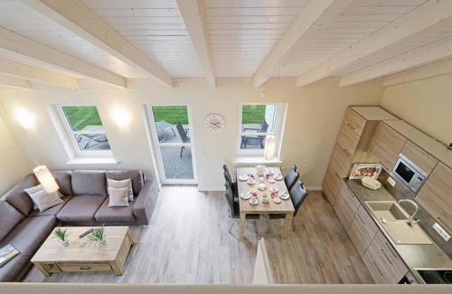 The brick-built semi-detached house is modern and cosy. The rooms are bright and flooded with light thanks to the open-plan design. In the living/dining area there is not only a cosy sofa corner with a wood-burning stove, but also a modern kitchenette and a dining area for up to four people. So there is plenty of space for socialising with visitors. The other half of the house can be found under the number DSH892 - ideal, for example, for couples travelling together who value privacy.