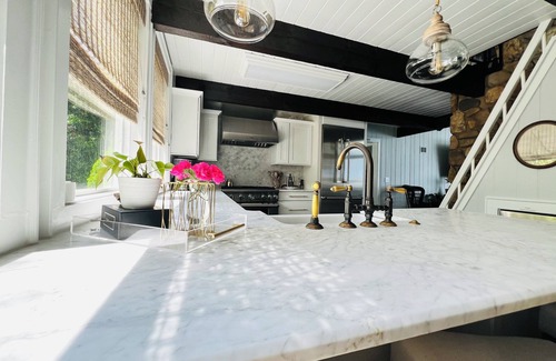 Step into our lakefront cottage and immediately feel at home with our cozy decor and beautiful vaulted ceilings with an expansive view of the lake. When you look out the living room you feel as if you are sitting right on top of the water!