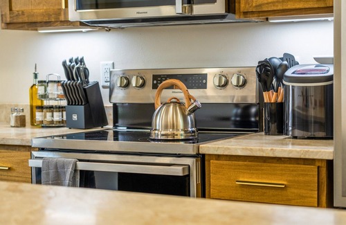 With a king suite and loft bedroom, two full bathrooms, and an inviting layout, this home is built for both relaxation and connection. Downstairs, the primary bedroom features a king bed and private ensuite. Upstairs in the loft, you’ll find two double beds, a queen sleeper sofa, and a second full bathroom—perfect for families or groups. The living area includes an additional queen sleeper, offering flexible options for everyone to rest easy. Vaulted ceilings, tall windows, and a sleek electric fireplace create a warm, modern atmosphere. The kitchen is fully equipped and ready for anything from pancake breakfasts to dinner in with friends.