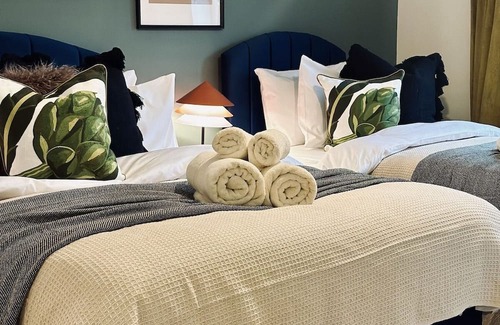 This exquisite property sleeps 8 adults across 3 Bedrooms with 5 actual beds. Our Kitchen is stocked with cooking utensils so you can have the best night in!