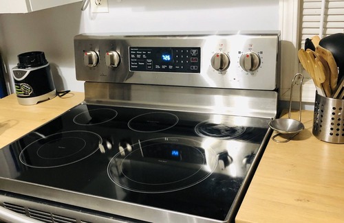 Our suite was recently renovated in 2020. Our 550 sqft modern yet classic suite has a full kitchen and a small dining area and a recreation room . Our beautiful property has 1 queen bedroom 🛏& 2 sofa 🛋. We also provide a lot of cool amenities such as movie projector 📽, a self-clean programmable robot vacuum, a single serve k-cup compatible & ground bean coffee maker ☕️, an air fryer/baker/roaster/food-warmer, and a microwave ; all these at your disposal to help make our guest suite, your home away from home 🏡