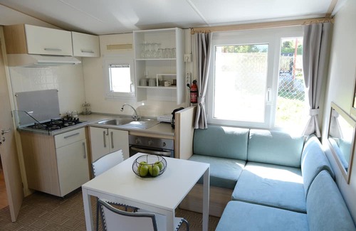 Sunset Beach House is just 30 meters from the beach. It is a beautiful, modern mobile home offering a garden and terrace with great sea views, BBQ facilities and outside showers. Guests benefit from free WiFi and private parking in the courtyard. The air-conditioned mobile home has 3 bedrooms, 1 bathroom with shower, 1 wc, living room and kitchen with fridge and electrical appliances. Sunset Beach House is 31 km from Chalkidiki Mineral Cave and Museum. The nearest airport is Thessaloniki Airport, at a distance of 62 km. We will be happy to welcome you to the place we made with love and respect. Next to the beach there is an outdoor common area with benches and built-in tables. The neighborhood is quiet. Every morning a van passes by selling bread and breakfast items.