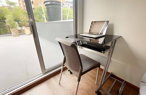Our spacious apartment has all the amenities that will make you feel at home. You can rest, study, work and share with your family or friends. We have free parking, access to high-speed Wi-Fi, fully equipped kitchen, refrigerator, dining area, closet, bathroom, Smart TV, washer and dryer, sofa bed and a double bed providing privacy and comfort. We also have a perfect terrace to start your day with a good Colombian coffee or relax at the end of the day with a glass of wine. AMENITIES High-speed Wi-Fi Fully equipped kitchen Contactless check-in Coffee Refrigerator Dining space Smart TV Hand and body soap Work area Terrace Free parking We are strategically located north of the city in the North Canton (Carrera 8 con calle 106), so you can go to the main attractions of the city, including shopping centers, chain stores, stores, restaurants and food courts, nightlife, universities, clinics, pharmacies and business centers. Approximately 50 meters away, there is Carrera 7 and Carrera 9, some of the main roads in the city where you can take different means of transportation. It is easily accessible by public transport.