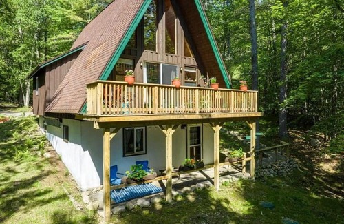 This adorable A-Frame home is nestled in the woods. In the Winter months, 4-wheel drive is HIGHLY recommended as there's a small portion of the road that is not paved.