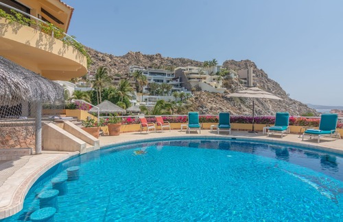 Villa Stein is located in one of the most prestigious residential sections of Cabo San Lucas, 'The Pedregal.' The open ocean offers a variety of entertainment ranging from watching the whales frolic in the surf to counting the boats as they return to harbor at the end of the day. Our pool is cantilevered over the beach to take advantage of the location and a swim up bar makes it the perfect spot to spend the day. There is also a hot tub outside that cascades into the pool.