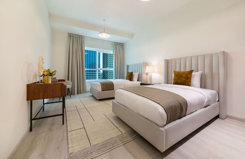 Communal facilities include an outdoor swimming pool and a fully equipped gym. You can experience different cuisines in many of the restaurants in the area or book a scenic aperitivo at one of the many rooftops nearby. When you are ready to explore the city further, jump on the Dubai metro and make your way to Dubai Marina and JBR in only 20 minutes.
