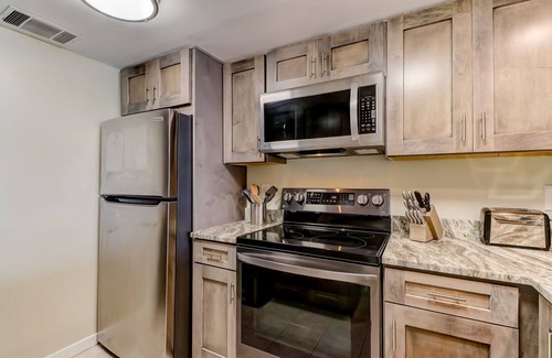 One of the primary benefits of staying in a vacation condo rather than a hotel is having the ability to fix your own meals, allowing you to eat out less and save money. You’ll appreciate our fully-equipped kitchen with all stainless steel appliances and granite countertops.