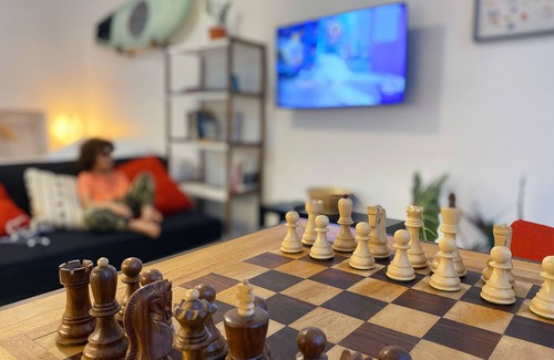 Keep it simple at this peaceful and centrally-located studio. Placed in the heart of Santurce, we carefully designed and prepared this spot to have all the commodities that you might need. Kitchen, fridge, bathroom, Queen bed, SMALL bed-sofa (39"x66"), smart 44”TV, AC, fan, fast (optic fiber) internet. Solar battery back-up during power outage (limited, no ac during power outage)