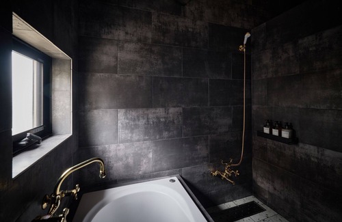 While you're here, you can enjoy all the comforts of home and more, including a bidet and air conditioning, as well as a dryer and towels. Other amenities include soap, toilet paper, and a hair dryer.