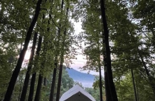 Tryon Glamping gives you a comfortable and stylish place to enjoy the outdoors. Whether its relaxing on the deck, taking a hike, going for a swim, fishing or go tubing in one of the local rivers. Or wandering through small towns looking for that perfect antique (or French toast), glamping with us is like camping without the haste of set up/ tear down, lugging around all the gear and sleeping on the ground. With our tent, you get all the basics including a fire pit, a wood burning stove to keep you warm in the winter months and to cook on, a bed, drinking water and a comfortable way to use the restroom. We even provide a solar panel for lighting and portable solar lights to use around the property. Bring a cooler with food, a couple sleeping bags and maybe a nice adult beverage or two, relax and enjoy our very private 10 acres of woods and Mountain Views!