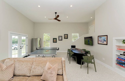 This home is a large group's dream - This home has a luxurious open floor plan perfect for entertaining and relaxing with a large group of friends and family. Custom built to cater to large groups, the 6,500 square foot home (two buildings) has 8 bedrooms with 5 king and 9 queen beds (comfortable sleeping for 28), 7 full and 1 half bathroom. This home features a pool, 10 person hot tub, gourmet kitchen with Wolf Sub-Zero appliances, outdoor living & dining room (Blaze gas grill), seating for your large group, 4 Samsung/Sony 60” tv’s, pool table, and so much more! The home also features high-end furnishings and luxury linens including Peacock Alley, Christy’s and Kassatex. Comfort and lavishness was the top priority during each meticulously curated selection for this home.
