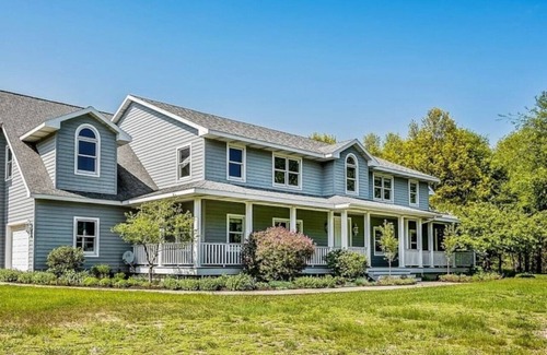 This stunning Michiana executive home has been recently updated and designer decorated. It is the perfect place to relax and unwind in total privacy, while minutes to all the excitement the shores of Lake Michigan have to offer. An ideal location for family/friend gatherings. We do allow small events for an additional fee. This home has over 6000 sq ft with 6 bedrooms & 4 baths. Sleeps 24. Near wineries, shopping, casino, restaurants, & farm markets. Access to Stop 31 beach in Long Beach.