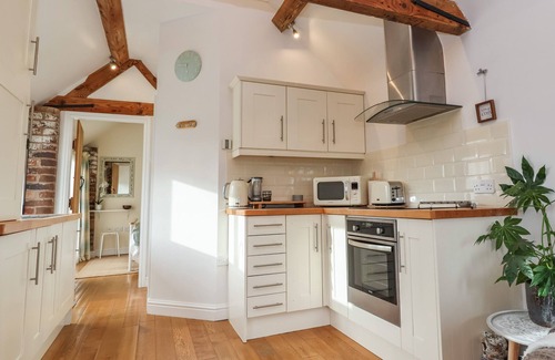 The Cow Shed consists of an open-plan living space with a kitchen with electric oven, induction hob, microwave, fridge, washer/dryer, a dining area, and sitting area with Smart TV. There is a king-size bedroom, serviced bt a shower room. Outside there is an enclosed front and rear garden with furniture, plus off-road parking for one car. Two well-behaved dogs welcome. Sorry, no smoking. Within 0.9 miles or less you will find a shop and a pub. WiFi, fuel, power, bed linen, and towels included in the rent. Explore Shropshire with a stay at The Cow Shed. Please Note: The owner can only accept a check in on a Friday or Tuesday at this property. Minimum stay duration of 3 nights. If booking a stay of more than 3 nights, the check-out must be on a Friday or Tuesday. Note: This property has a Good Housekeeping Bond of 250 GBP.