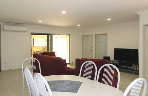 Gorgeous 3 bedroom, 1 bathroom holiday home on the lower level of a beautiful executive home. Fully self-contained with a modern kitchen (please note there is no oven), lounge area , reverse cycle air conditioner and 3 good size bedrooms with one queen bed and 4 singles.