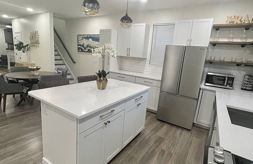 •Chef’s kitchen with large center island, clean white cabinetry throughout and brand new appliances