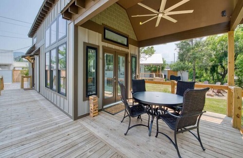 This space has all high end finishes and is brand new for 2021. Hardwood floors, tiled shower with glass doors, solid surface counters, unique cool loft with a beautiful king bed, private master with a queen bed, big screen TV over the fireplace, and all the luxuries of a fine hotel. Coffee maker, blender, dishes, pots and pans, washer dryer, Bluetooth speakers, covered back porch with ceiling fan and 6 top table, private outdoor grill, the list goes on and on...